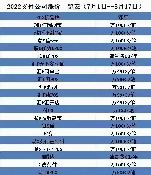 当然不仅是汇付天下品牌,还有海科融通、刷新支付、汇付天下、易支付、付临门、店掌柜、星支付等POS机品牌,建议都可以换其他支付公司的POS机了,因为后期这1.5%就是上调的标准。